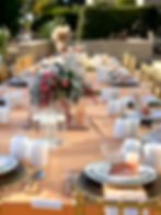 The details of the space, perfectly executed by Stacy Hirson of South Bay Soirée's took us to another world. An elongated table covered in light terracotta table cloths featured warm tropical details that elevated the deck overlooking the Pacific. With palm leaves as the centerpiece, floating candles + florals dripping with romantic accents, the pieces running down the table were perfectly placed on bohemian tile, reminiscent of the local towns in Mexico. Each place setting was customized with name cards designed by Glam Celebration with a gold palm tree + a fringe tassel. Layers of handwoven chargers + vibrant napkins were delicately placed with white ceramics and Himalayan pink sea salt shot glasses to welcome each guest to their seats. Turquoise, blush + natural colored pillows covered benches for guests to lounge with candles + lanterns lighting up the deck as the sun set.